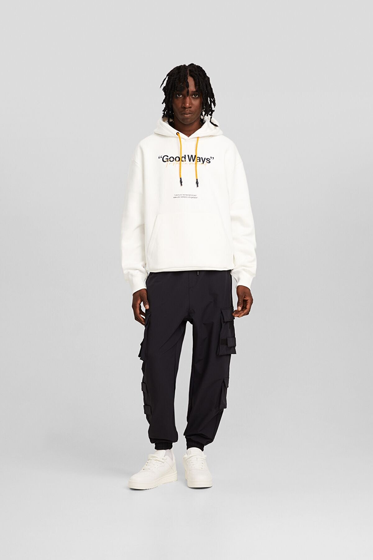 یقه توری هودی مردانه سفید برند برشکا Bershka به آن ظاهری مدرن و جذاب میبخشد. همچنین، با توجه به رنگ سفید آن، با اکثر رنگهای دیگر به راحتی ترکیب میشود.