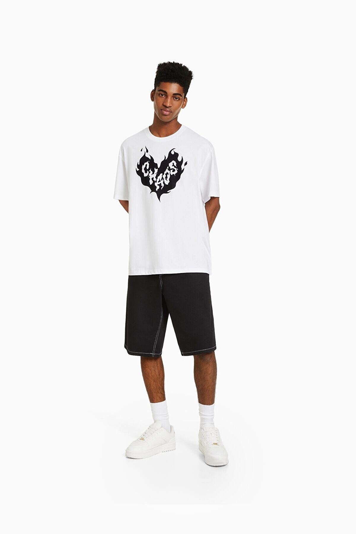 تیشرت ورزشی باکسی طرح دار با رنگ سفید جذاب اورجینال برند برشکا نمونهای است از طراحی مدرن و کیفیت بالایی که این برند اسپانیایی در محصولات خود ارائه میدهد. این تیشرت از ۱۰۰ درصد پنبه تولید و همچنین با استفاده از پارچههای با کیفیت و مقاوم ساخته شده است که راحتی و آزادی حرکت را در هنگام ورزش تضمین میکند.